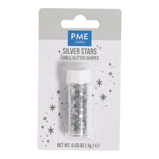 Jedlé třpytky ve tvaru stříbrných drobných hvězdiček dodají všem vašim svátečním jedlým výrobkům nádech lesku a luxusu. Skvělé na cukroví, dezerty, cupcakes a mnoho dalších svátečních dobrot. Snadné zdobení během pár sekund! Velikost hvězdiček cca 3-5 mm. Složení: zahušťovadlo (E464), barvivo (E172,E153). Výživové hodnoty (ve 100g výrobku): ---