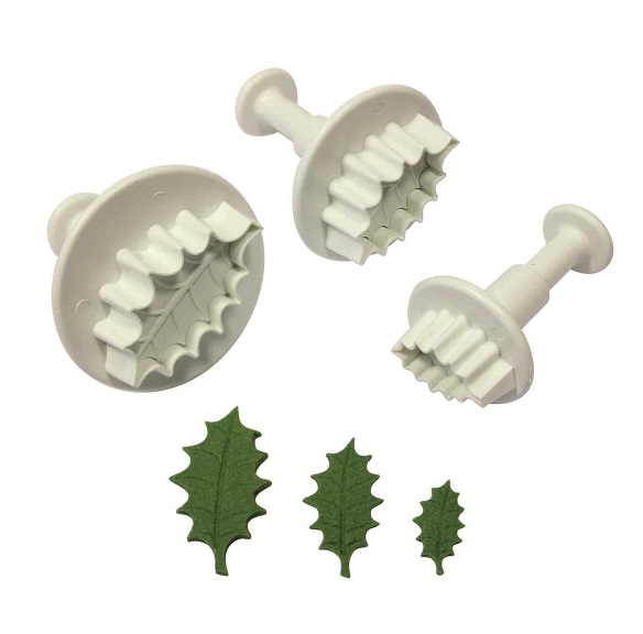 PME Vykrajovačka Cesmína sada 3 ks Postup: 1) Vyválejte na nelepivém povrchu, 2) vykrojte tvar, 3) vytlačte tvar stlačením pístu. Výrobek myjte ručně, není vhodný do myčky nádobí. Velikost: nejmenší list cca 23 mm, střední list cca 30 mm, velký list cca 40mm