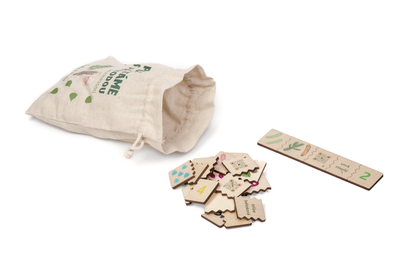Počítáme s přírodou vyrábí u nás v dílně české ruce z kvalitního českého certifikovaného dřeva. Balení obsahuje 50 dílků (10 sestav) a návod. Každá sestava se skládá z pěti dílků, které obsahují reálný obrázek listu a plodu, siluetu listu nebo plodu, číslici, název a QR kód. Číslice jsou v barevném kódování podle Montessori výuky. Zabaleno v přírodním látkovém pytlíku s potiskem. Autorem kreseb jsou čeští ilustrátoři, obrázky jsou chráněny autorskými právy. Počítáme s přírodou je edukační hra se zvukovými QR kódy, se kterou poznáváte, počítáte a přiřazujete hravou formou dílky, které k sobě patří. NÁVOD: Cílem hry je přiřadit k obrázku listu a plodu správný název, siluetu listu nebo plodu, dílek s číslicí a dílek s QR kódem. S pomůckou můžete hrát hned několik her. Vyberte si jen některé dílky a přiřazujte pouze obrázek listu a plodu k názvu nebo spojujte siluety listů a plodů s číslicí. Každá sestava má stejný tvar spoje. Po stažení aplikace "Lesní Svět" a načtení QR kódu, který naleznete na dílcích, si pustíte hlas zvířátka a dozvíte se spoustu dalších informací. Druhy dřevin: javor mléč, smrk ztepilý, jasan ztepilý, jírovec maďal, borovice lesní, buk lesní, dub zimní, modřín opadavý, bříza bělokorá, lípa malolistá. V nabídce máme variantu Stopy zvěře a Listy a plody. Lesní svět = značka s ekologickým certifikátem udržitelného hospodářství PEFC. Všechny výrobky jsou vyrobeny s ohledem na životní prostředí.