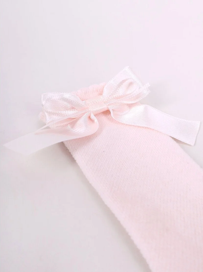 Dívčí podkolenky - měkký bavlněný úplet - jemný prolamovaný vzor - žebrování zdobené mašlí - dostupné barvy: pudrově růžová, ecru a bílá - náhodně vybrané Tkanina: 80 % bavlna, 18 % polyamid, 2 % elastan