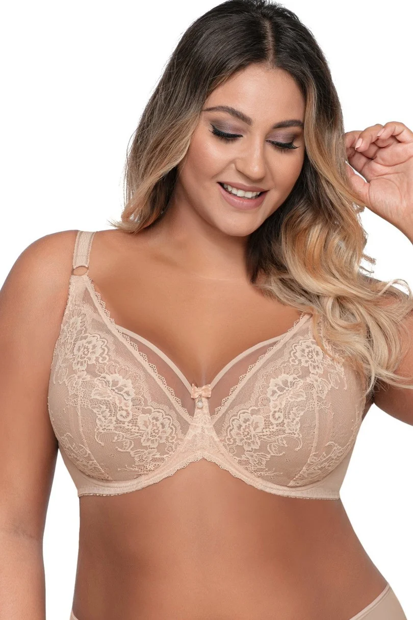 Biustonosz Ava AV 1824 Beige to koronkowy model typu soft z fiszbinami, który zapewnia wyjątkowy komfort i efektowne podtrzymanie biustu. Miseczki wykonano z podwójnej warstwy: wewnętrzna to delikatny tiul, a zewnętrzna to piękna, wyrafinowana koronka. Regulowane, nieodpinane ramiączka pozwalają na idealne dopasowanie, a subtelne paseczki dodają całości uwodzicielskiego charakteru. Konstrukcja biustonosza została zaprojektowana tak, aby doskonale wspierać każdy rodzaj biustu. Skład materiału: 88% poliamid, 8% bawełna, 4% elastan, co zapewnia trwałość i wygodę noszenia. Skład: 88% Poliamid, 8% Bawełna, 4% Elastan