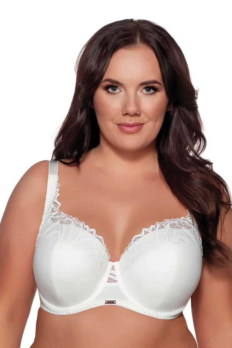 Biustonosz usztywniony, miseczki utrzymują piersi w swoich ryzach, zbierając je spod pach i solidnie podtrzymując. Dzięki elastycznemu obwodowi i dopasowanym ramiączkom biustonosz utrzymany jest stabilnie w odpowiednim miejscu, nie nadwrężając przy tym pleców i ramion. Koronka utrzymana w roślinnym motywie urokliwie wykańcza miseczki, pnąc się po ramiączku ku górze i prześwitując zalotnie w mostku, a metalowe logotypy AVA ulokowane z przodu i z tyłu dodają Yasemin odrobiny blasku. Skład: