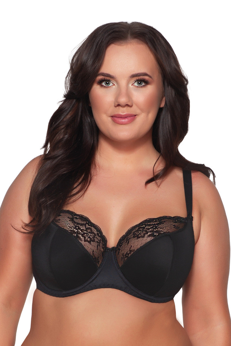 Hladká, elegantní podprsenka s vyztuženými košíčky, košíčky vyztužené zespodu příjemnou pěnou nadnášejí a podpírají poprsí a ladně ho tvarují ve výstřihu. Horní část košíčků zdobí stabilní květinová krajka, která koketně zakrývá horní část ňader a nechává to, co je skryté, na fantazii. Díky propracovanému designu podprsenka pevně drží na svém místě, zatímco široký obvod a ramínka zajišťují maximální pohodlí. Složení: 88% polyamid, 8% bavlna, 4% elastan   .