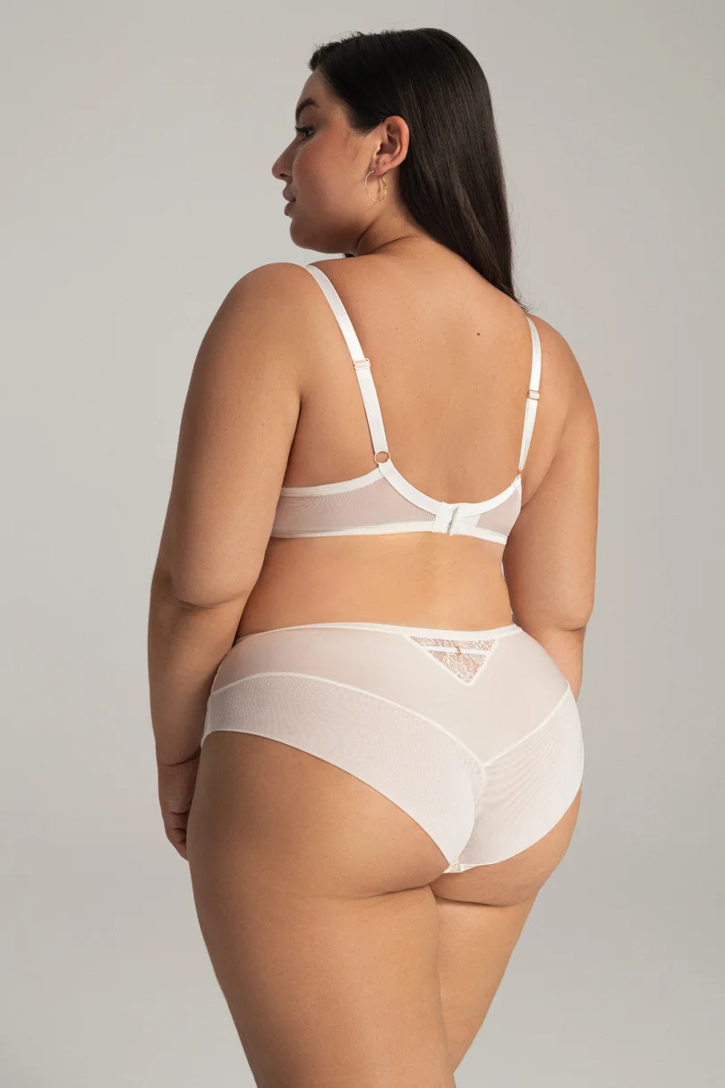 Biustonosz miękki, konstrukcja K-1130 Model AV 2148 BLOSSOM SOFT SIDE SUPPORT to urzekająca mieszanka delikatności i funkcjonalności. Koronka w odcieniu ecru, lekka niczym pajęcza sieć, subtelnie oplata dolną część biustonosza, miękko wspierając biust. Górne partie miseczek pozostają transparentne, ozdobione matową lamówką, która dodaje elegancji i subtelnie definiuje linię biustu. Dzięki bocznemu panelowi podtrzymującemu, piersi są idealnie zebrane i zaokrąglone, tworząc zmysłową sylwetkę. Ten wyjątkowy model to połączenie romantyzmu i wygody, idealne na każdą okazję. Skład surowcowy: 88% Poliamid, 8% Bawełna, 4% Elastan.