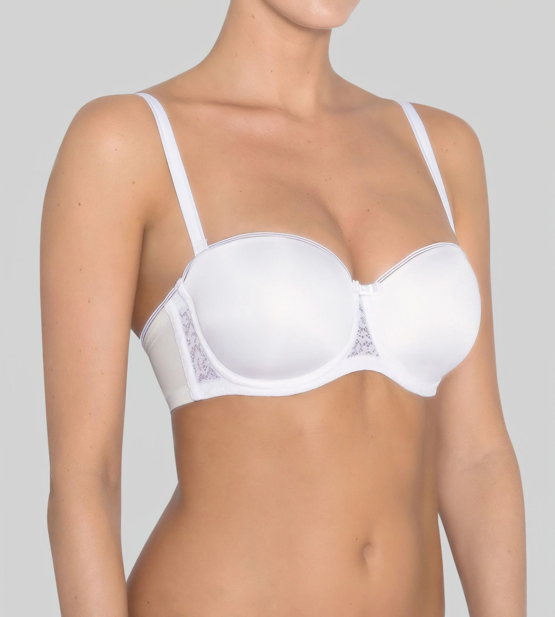 Materiálové složení: 54% polyester, 35% polyamid, 11% elastan. Kód produktu: 10167794 Hladký satén a ženská krajka spolu s mimořádně jemným pocitem dělají z této podprsenky z řady Beauty-Full značky Triumph naprostou nezbytnost. Je tak dobrá, že je dokonce neviditelná pod oblečením. Tvarovaná košilková podprsenka bez ramínek vyrobená z ženské elastické krajky. Dokonale tvaruje tělo, bez námahy neviditelná pod přiléhavými topy Trojrozměrný drát Flexi Wire a boční kostice poskytují optimální oporu Super měkké zapínání na háčky a očka zaručuje vynikající pohodlí Nastavitelná ramínka pro maximální pohodlí Vyberte si odpovídající podprsenku Tai nebo Hipster ze stejné řady a doplňte svůj vzhled.
