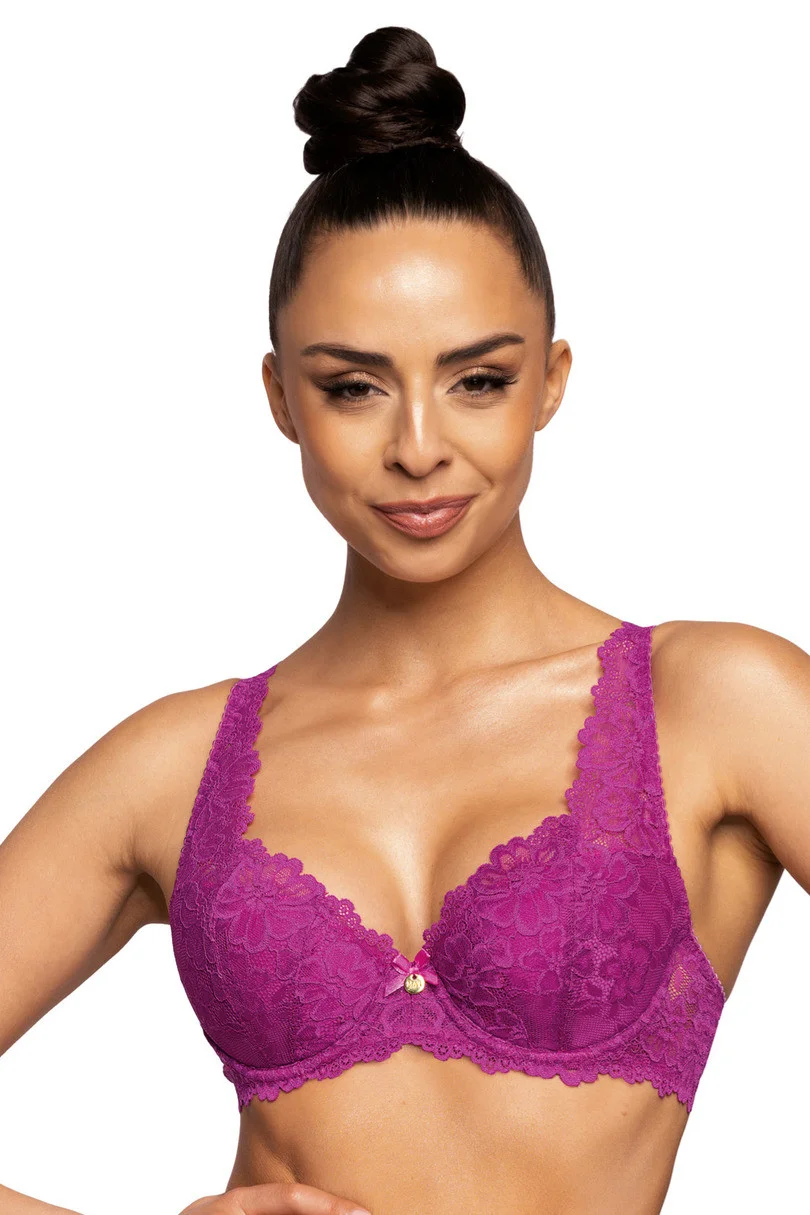 Poloměkká vyztužená krajková podprsenka s květinovým motivem, uvnitř bavlněná podšívka, boky vyztužené svislou kosticí, ozdobná nastavitelná ramínka, neodnímatelná, ideální pro podporu a pozvednutí prsou. Složení: 44 % polyamid, 17 % polyester, 17 % bavlna, 17 % polyuretan, 5 % elastan .