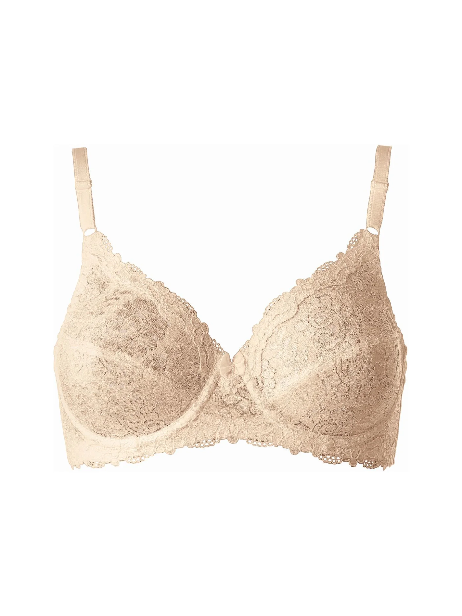 Nejprodávanější podprsenka z řady Complement značky Triumph s vestavěným střihem, s měkkými košíčky s kosticemi, poskytuje ideální oporu a efekt shrnutých prsou a nejvyšší komfort nošení. Košíčky z krajky, z poloviny pokryté další vrstvou tylu Dokonale tvaruje a podpírá poprsí Ramínka podprsenky bez ramínek nastavitelná vpředu po celé délce Model doporučený zejména pro ženy s větším poprsím Materiálové složení: 96% Polyamid, 4% Elastan   Kód produktu: 10166802