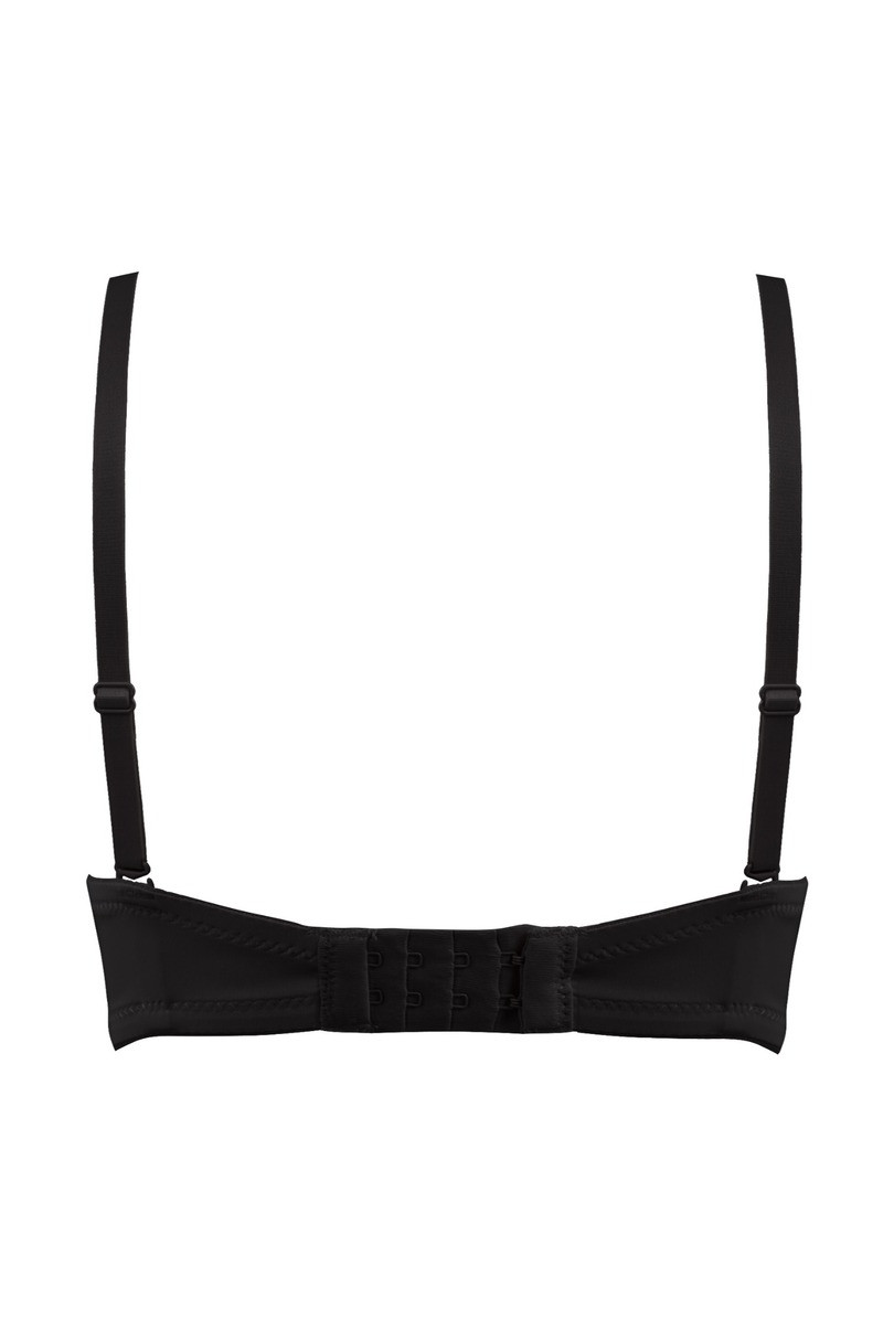 Biustonosz NELA Push-Up 19241 marki Mediolano w klasycznej czerni to must-have w garderobie każdej kobiety. Gładkie, formowane miseczki typu push-up pięknie modelują i podnoszą biust, tworząc zmysłowy dekolt. Biustonosz został uszyty z miękkiego, elastycznego materiału (81% poliamid, 19% elastan), który idealnie dopasowuje się do ciała i zapewnia pełen komfort noszenia. Model wyposażono w regulowane ramiączka oraz zapięcie na haftkę, co umożliwia indywidualne dopasowanie. Na mostku uwagę przyciąga dekoracyjne podwójne złote kółeczko, które dodaje nowoczesnego, minimalistycznego charakteru. Idealny do codziennego noszenia – pod dopasowaną bluzkę, sukienkę lub elegancki zestaw. Skład: 81% Poliamid, 19% Elastan