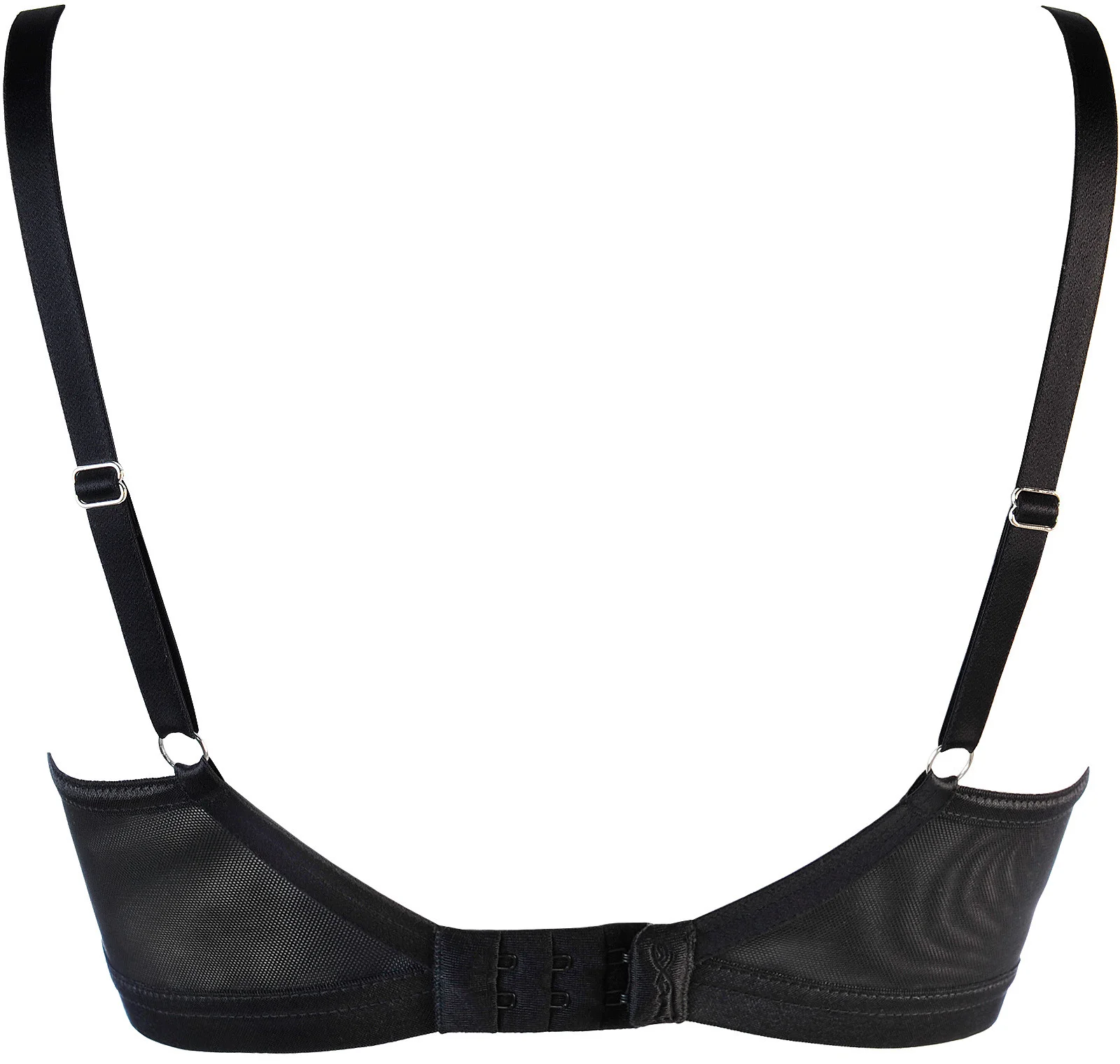 Klasická černá měkká podprsenka s prvky stříbrné lesklé krajky vám poskytne správnou oporu pro vaše poprsí a zvýrazní jeho tvar. Podprsenka má vycpávky pod poprsím v podobě drátku v košíčku, zapíná se na dvouřadové zapínání na háčky, ramínka nejsou odepínací, ale nastavitelná, doplňky ve stříbrné barvě. Zvolte třídu a eleganci pro zvláštní příležitosti! Materiálové složení: polyester 62 %, polyamid 36 %, elastan 2 %