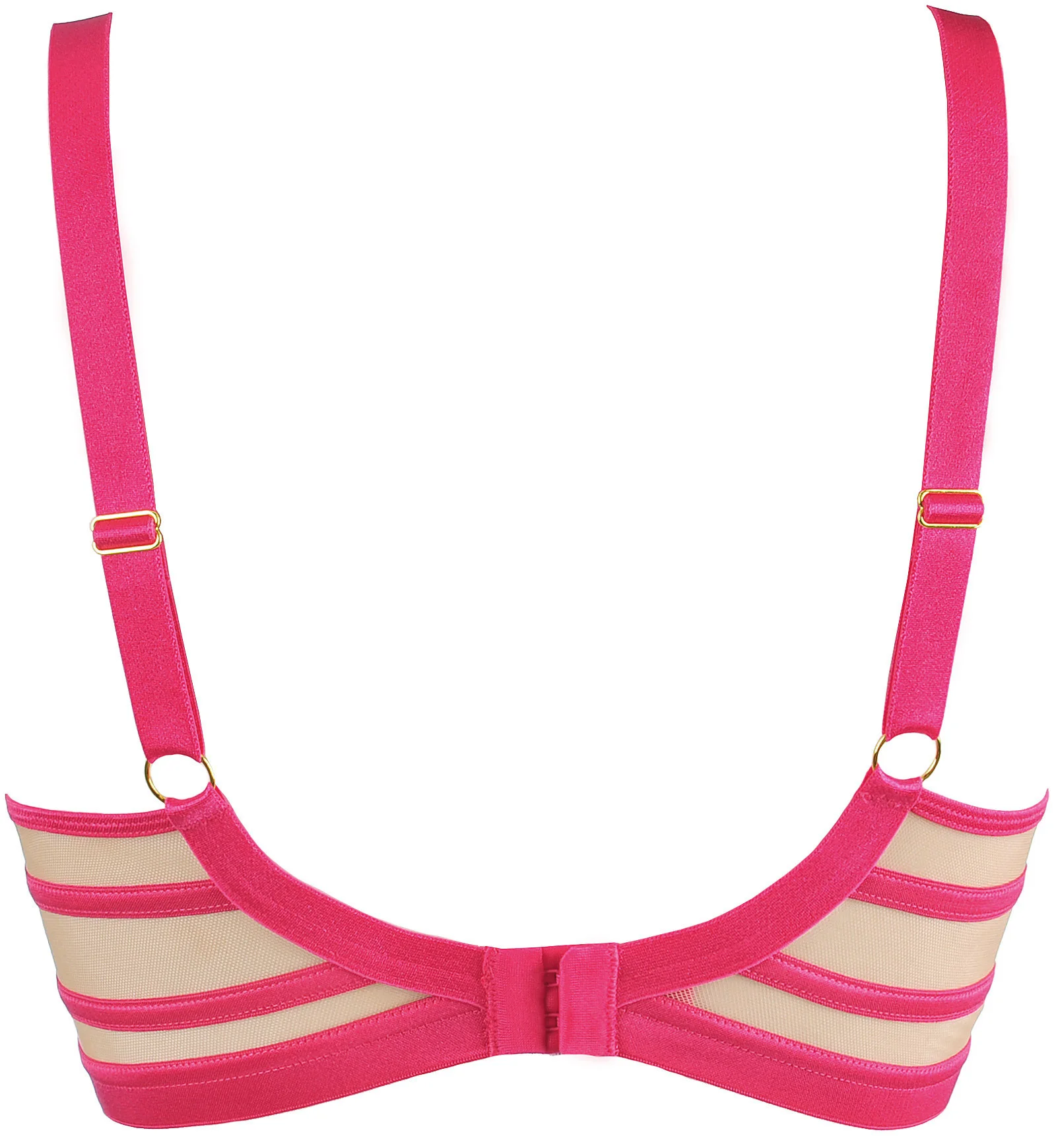 Měkká podprsenka, která kombinuje jedinečný design s klasickým střihem. Pevný béžový tyl v kombinaci s mikrovláknem se dokonale přizpůsobí tělu pro maximální pohodlí, zatímco energická růžová barva dodává sebevědomí a je doplněna zlatými doplňky. Podprsenka se zapíná na dvojitý háček a ramínka jsou nastavitelná a neodnímatelná, aby odpovídala velikosti. Složení látky: Polyamid 56 %, polyester 37 %, elastan 7 %