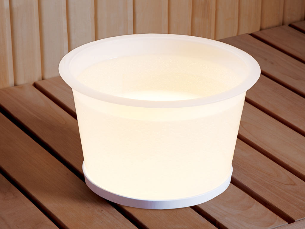 LED osvětlení v základně rovnoměrně prosvětluje vědro i své okolí, čímž se stává výrazným stylotvorným prvkem v sauně. K základně tvoří samostatnou část, čímž jsou elektrické součásti světelného zdroje chráněny před vodou.