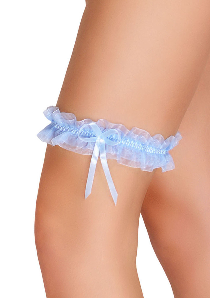 Krásný podvazek z dvojité stuhy s lehkým leskem. Saténová mašlička doplňuje celek. Univerzální velikost.
