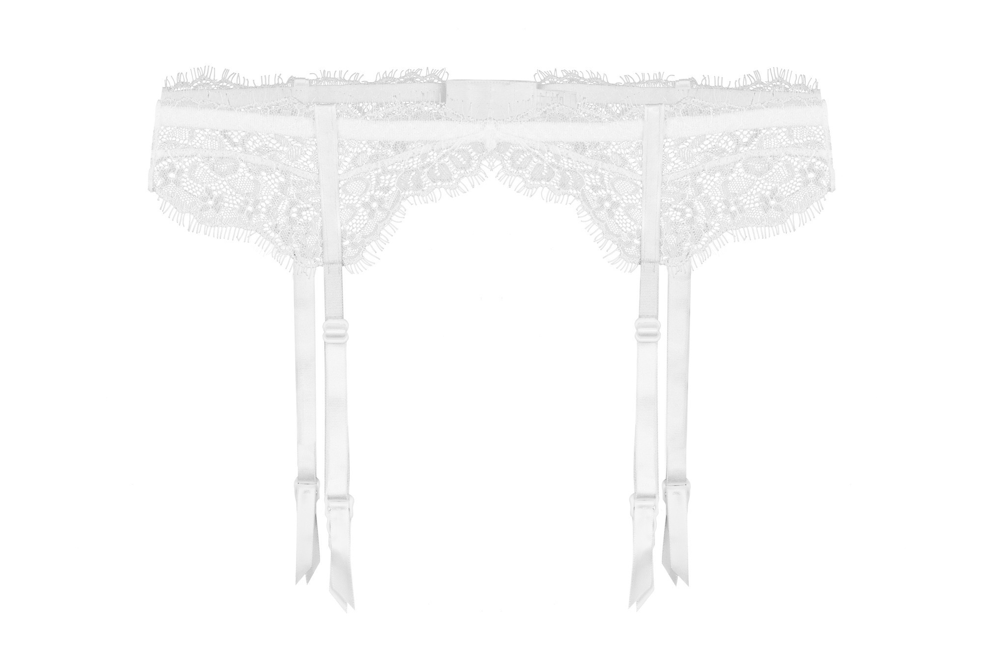 Krajkový podvazkový pás s květovaným motivem. Pásky k punčochám mají regulaci. Okraje krajky jsou zakončené jemnými nitkami. Krásná kombinace romantiky s trochou pikantnosti. Materiálové složení: 100% polyester.