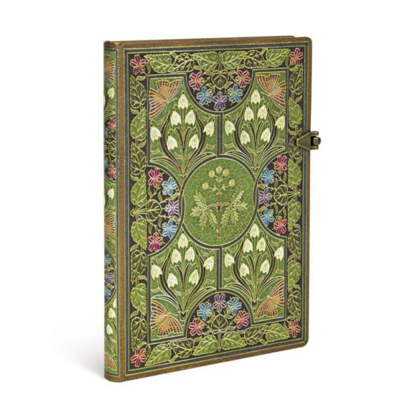 One can hardly conceive of a plant more conducive to poetry than the aptly named “sensitive plant.” The sensitive plant, also known as the shy plant, shame plant and touch-me-not, has leaves that shrink away from the touch. It closes tight in the dark and opens to the light. The design reproduced on our Poetry in Bloom covers was crafted by Riviere and Son and made with green morocco within fillets of gilt. The centrepiece is a sensitive plant surrounded by chambers containing snowdrops and other richly hued and contrasting flowers, foliage and butterflies. The original binding was used for The Sensitive Plant and Early Poems by Percy Bysshe Shelley, which employs the sensitive plant as an emblem for exploring how to find meaning and order in a world that leans toward entropy and chaos. Our covers are a celebration of the many moods of the creative spirit. We hope that our Poetry in Bloom journal users will be inspired by the contemporary style of binding we’ve chosen for this series.