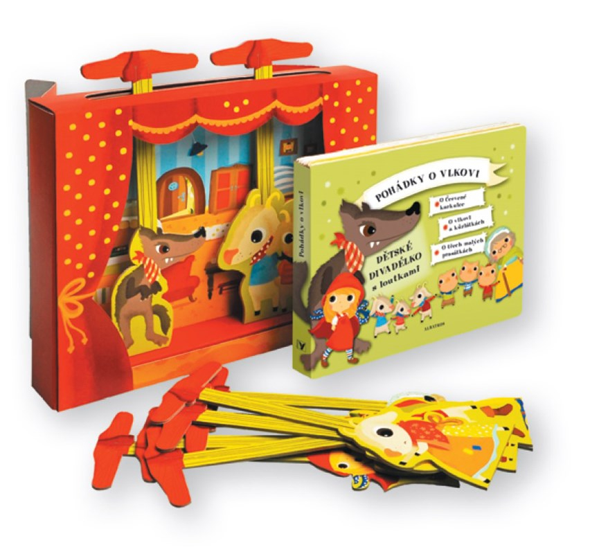 O Červené karkulceO vlkovi a kůzlátkáchO třech malých prasátkáchSe sérií dětských loutkových divadélek si můžete své oblíbené pohádky nejenom přečíst, ale také si je zahrát jako divadelní představení. Box, který poslouží jako jeviště, obsahuje loutky, kulisy a tři nejznámější pohádky o vlkovi. Příběhy jsou napsané jednoduchým stylem, u kterého udrží pozornost i ti nejmenší čtenáři. Na každou pohádku navazuje krátký scénář. Stačí jen postavit jeviště, nachystat loutky a představení může začít. Díky nádherným kulisám a loutkám vám známé pohádkové postavičky ožijí přímo před očima.
