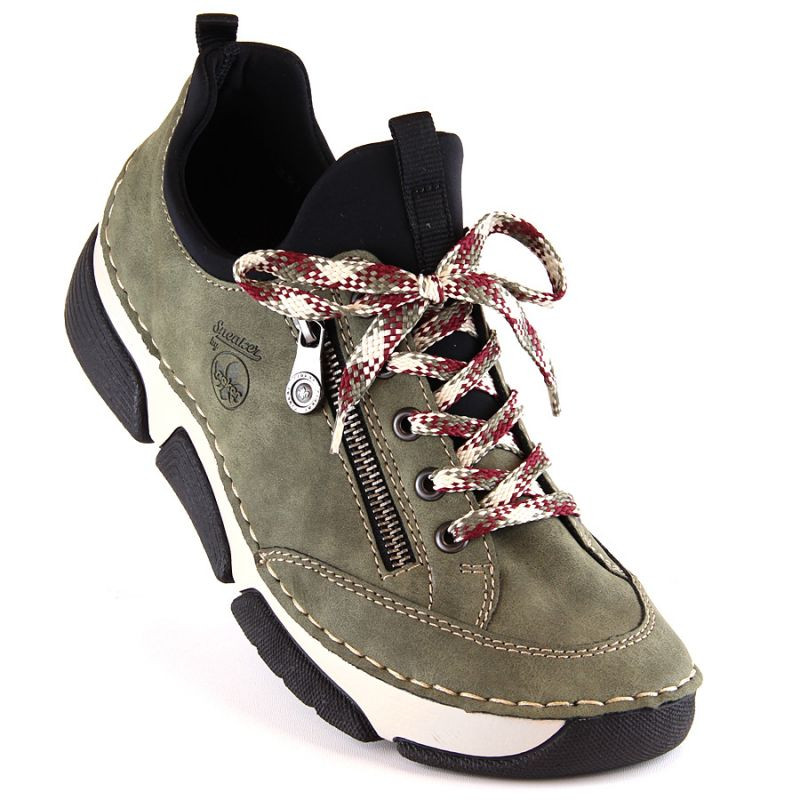 Pohodlná polobotka Rieker W RKR610 zelená Vlastnosti: značková obuv Rieker ideální pro každodenní nošení určeno pro ženy svršek z kvalitních materiálů kožená a textilní podšívka zapínání na zip a tkaničky nízký model univerzální barevné provedení logo výrobce Barva: zelená