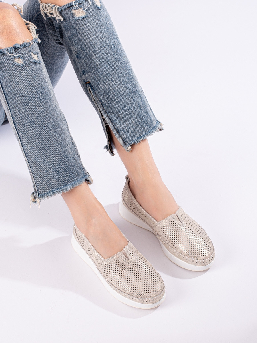 Pohodlné dámské zlaté polobotky bez podpatku 41