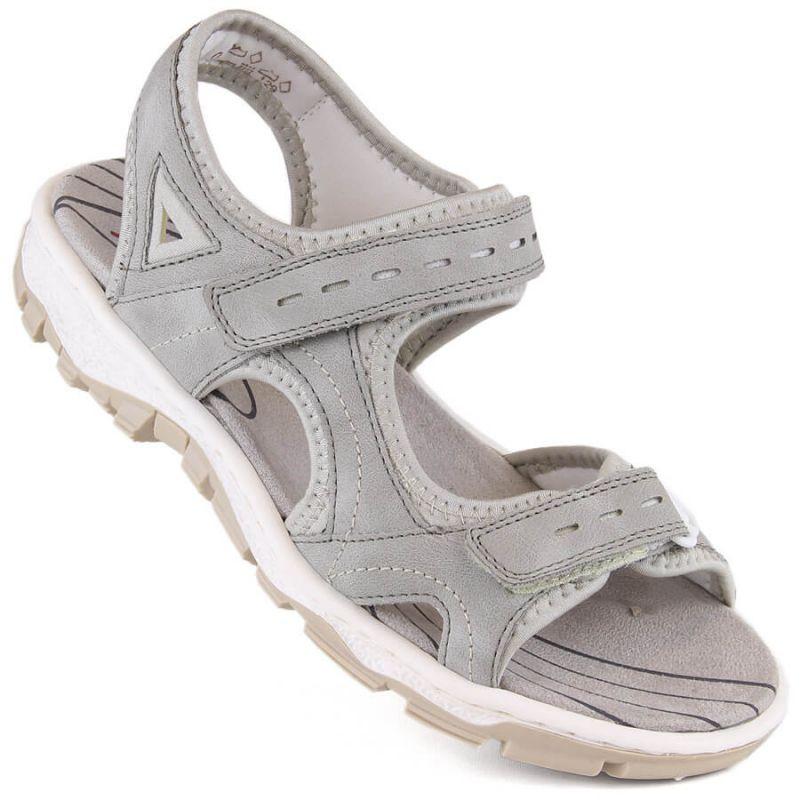 Pohodlné sandály Rieker W RKR674 grey Vlastnosti: značkové sandály Rieker ideální pro letní dny pro ženy zapínání na suchý zip svršek z vysoce kvalitní syntetické kůže podšívka je vyrobena z materiálu gumová podrážka univerzální barevné provedení Barva: šedá
