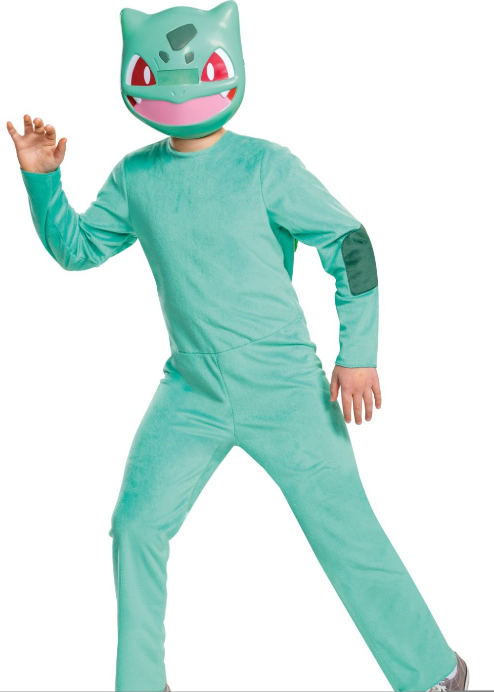 Dětský kostým Bulbasaura obsahuje overal a masku na hlavu. Velikost na 7 – 8 let.
