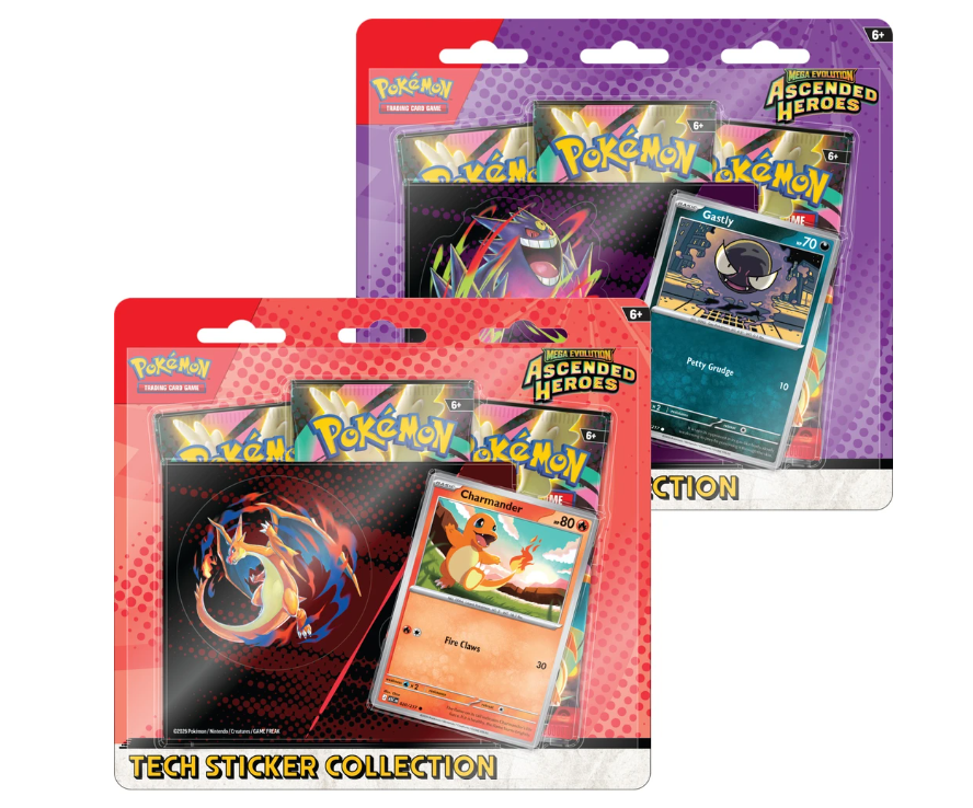 pBalení Pokémon TCG s promo kartou (Gastly nebo Charmander), samolepkami a 3 boostery./pp bObsah balení:/b br• foliová promo karta Gastly nebo Charmanderbr• arch se samolepkami (tech sticker)br• 3 boostery Pokémon TCG: Mega Evolution - Ascended Heroesbr• přístupový kód pro Pokémon TCG Live/p