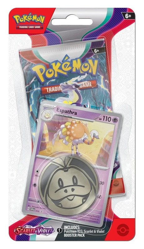 Speciální balení s boosterem sady Scarlet Violet, foilovou kartou a mincí.Obsah balení:1x booster (obsahuje 10 náhodných karet)1x foilová karta1x mince