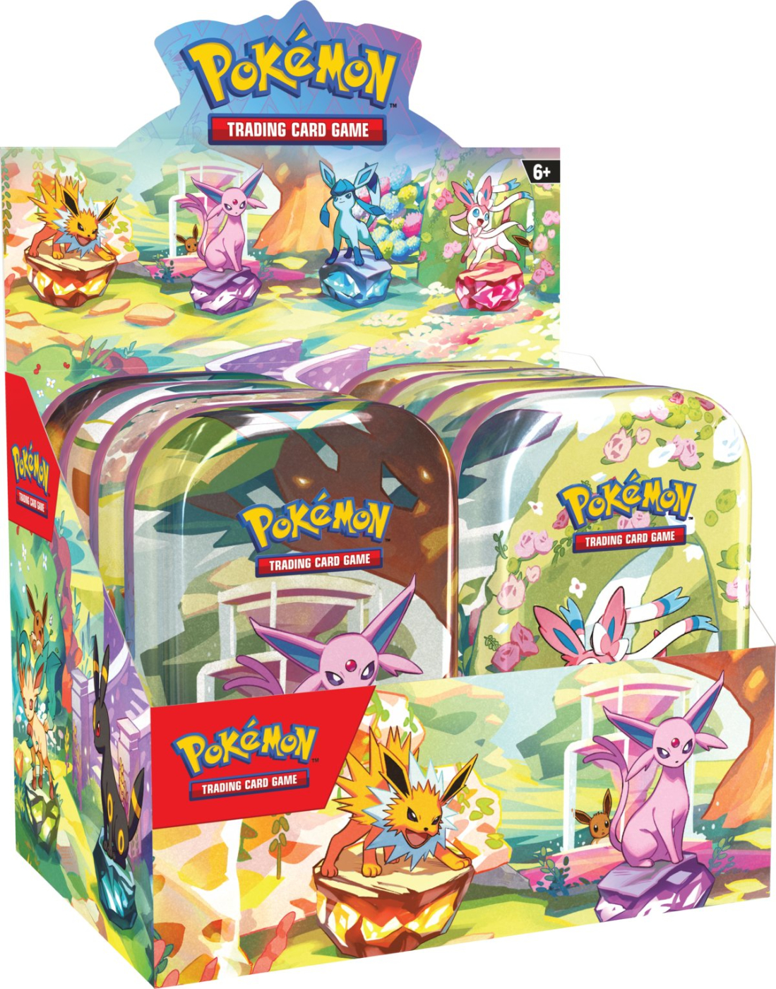 Plechová krabička s boostery a mincí. Obsah balení: • 2 boostery Pokémon TCG: Scarlet & Violet - Prismatic Evolutions • mince Eevee (1 z 8 barev) • artová karta s Pokémonem z krabičky - sesbírej všech 8!