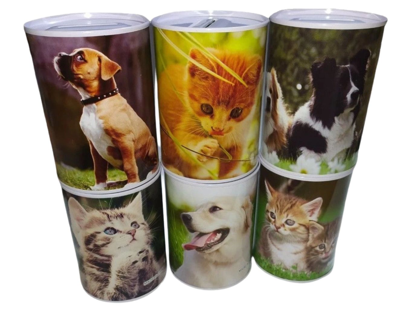 Hledáte originální pokladničku pro děti nebo zvířecí nadšence? Naše plechová pokladnička s motivy zvířátek (kočky, psi) je skvělou volbou!