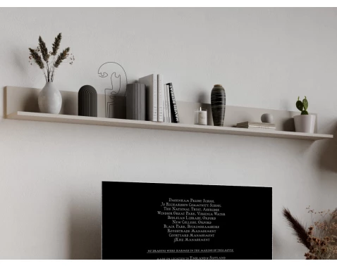 Police na zeď z řady Asko Living - nábytek v moderním minimalistickém stylu je nadčasový a zároveň plní svůj praktický účel. Vyrobena v barvě béžová kašmír.
