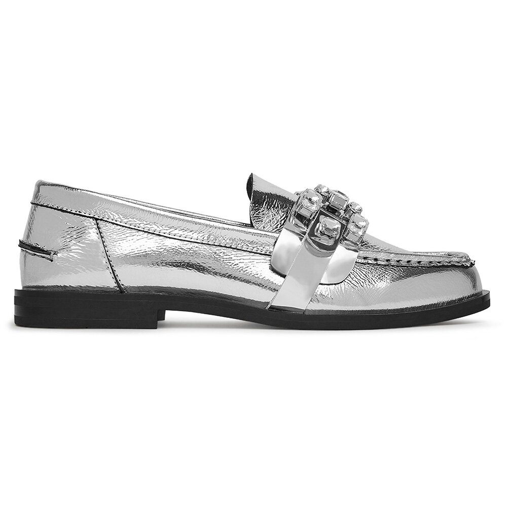 Polobotky STŘÍBRNÁ Přírodní kůže (useň) - Lícová EVA MINGE AMARYLLIS-V1792B-315 Srebrny EVA MINGE Dámské/Obuv/Polobotky