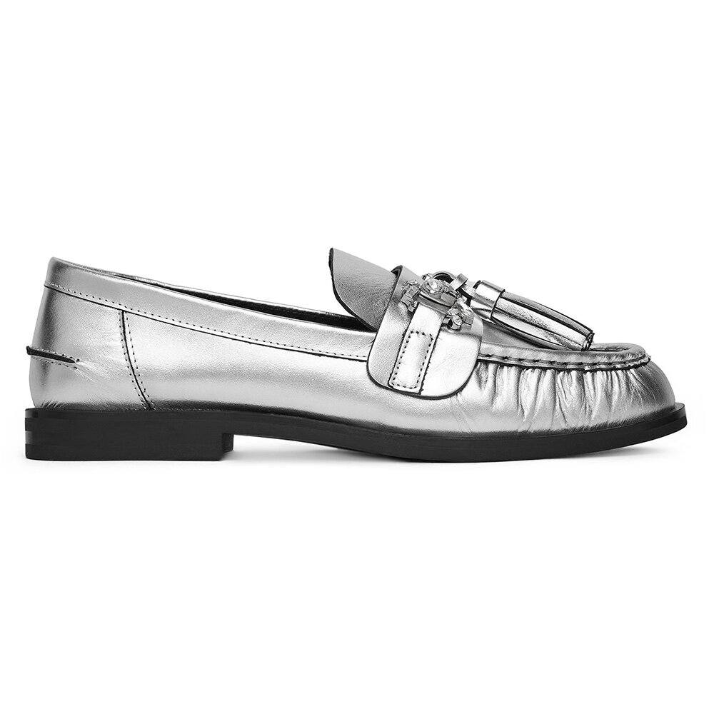 Polobotky STŘÍBRNÁ Přírodní kůže (useň) - Lícová EVA MINGE PETUNIA-V1792-335-1 Srebrny EVA MINGE Dámské/Obuv/Polobotky