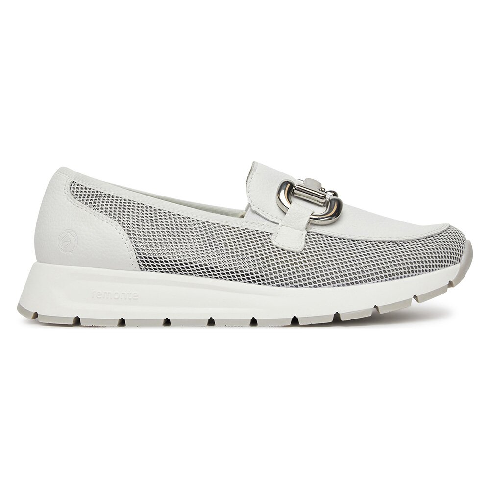 Polobotky BÍLÁ Přírodní kůže pokrytá syntetickým materiálem,Látkový materiál REMONTE D2G02-80 BIAŁY Remonte Dámské/Obuv/Polobotky
