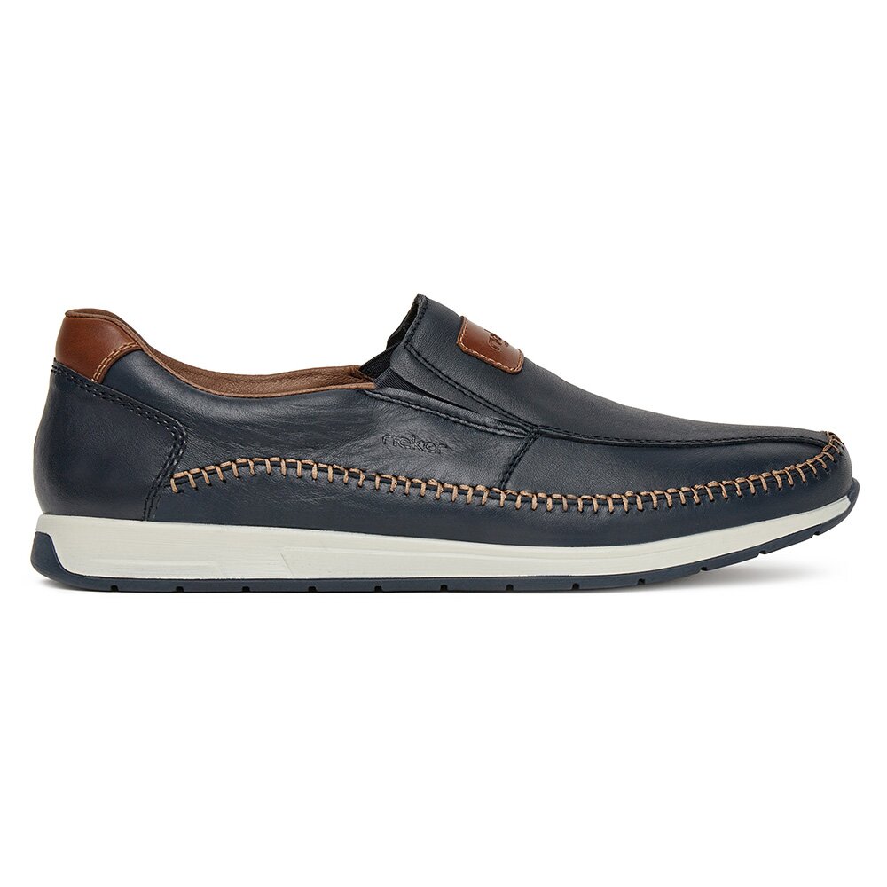 Polobotky TMAVĚ MODRÁ Přírodní kůže (useň) - Lícová RIEKER 11962-14 Granatowy Ciemny Rieker Pánské/Obuv/Polobotky