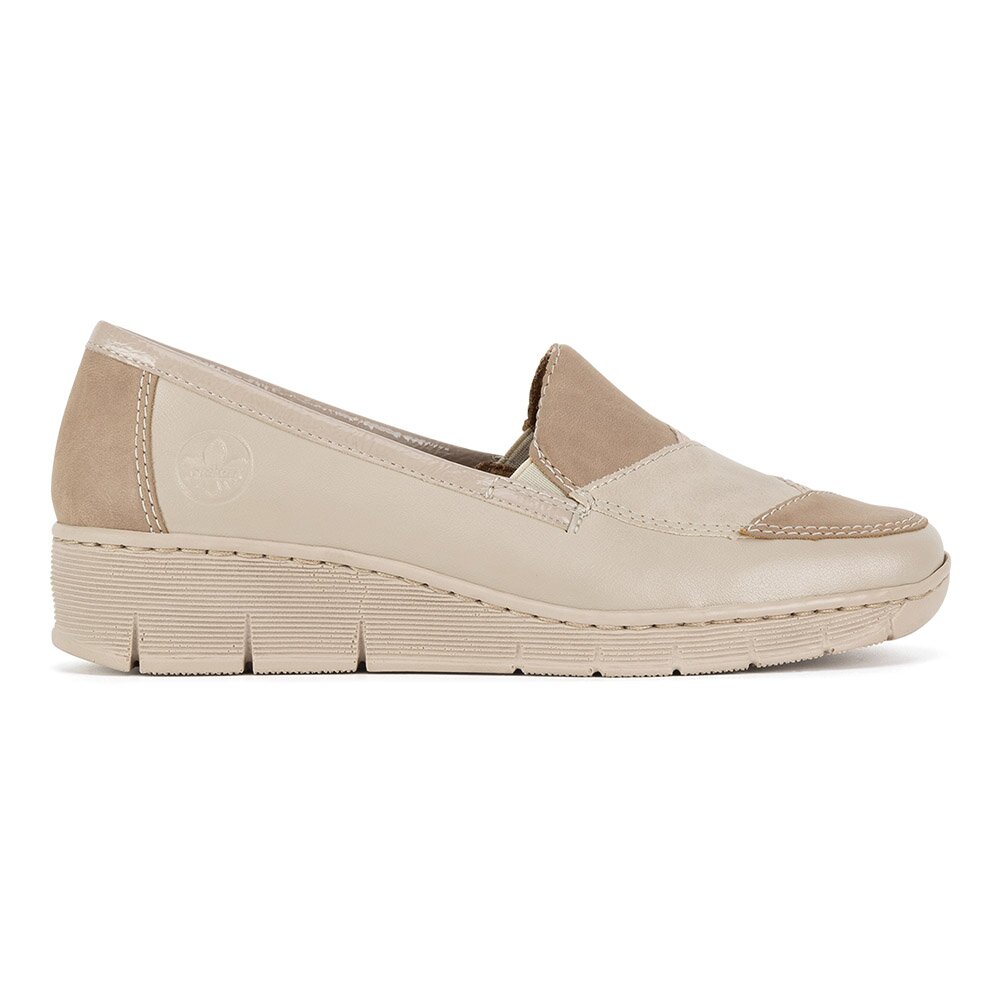 Polobotky BÉŽOVÁ Přírodní kůže pokrytá syntetickým materiálem,Syntetický materiál RIEKER 53785-60 Beżowy Rieker Dámské/Obuv/Polobotky