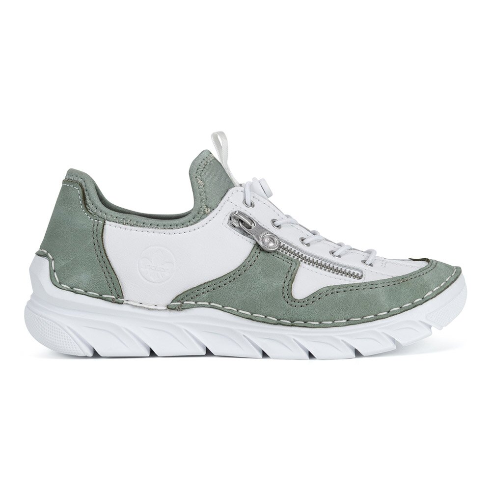 Tenisky BÍLÁ Přírodní kůže pokrytá syntetickým materiálem,Syntetický materiál RIEKER 55064-52 BIAŁY Rieker Dámské/Obuv/Tenisky