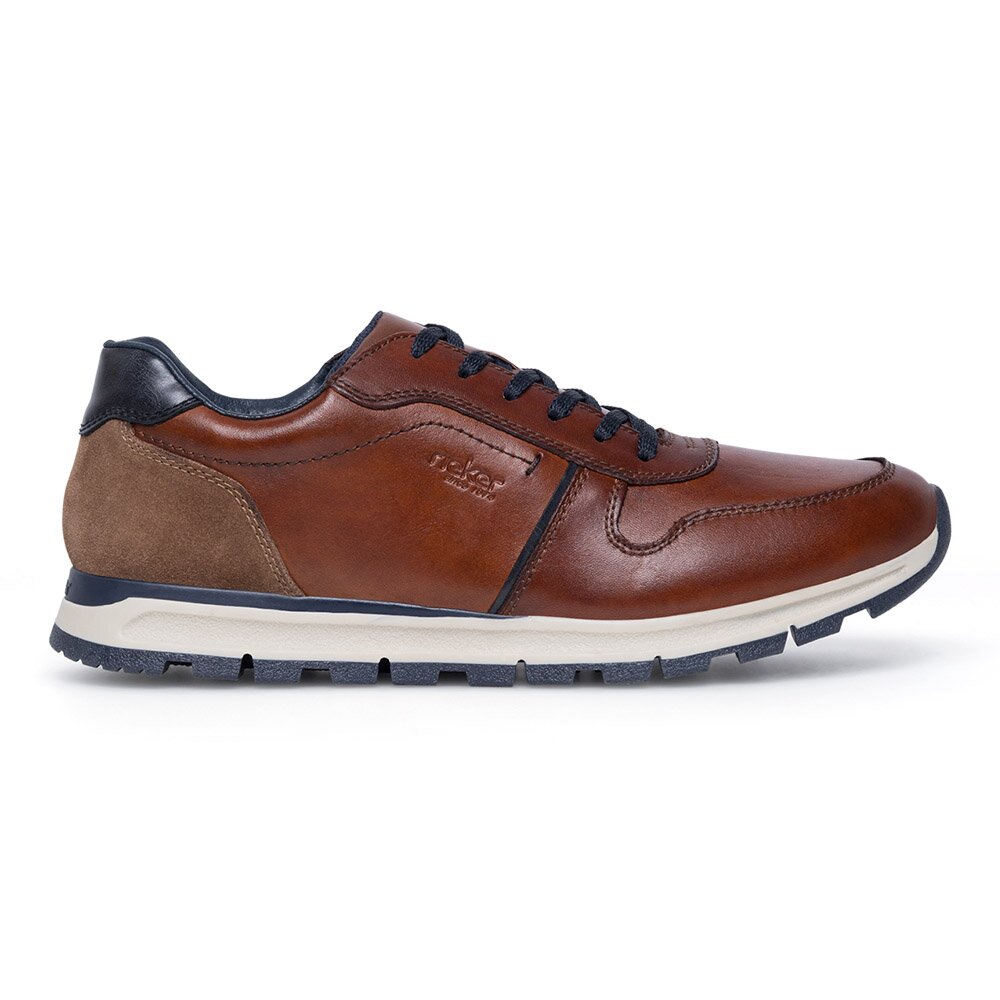 Tenisky TMAVĚ HNĚDÁ Přírodní kůže (useň) - Semiš,Přírodní kůže (useň) - Lícová RIEKER B0503-24 BRĄZOWY CIEMNY Rieker Pánské/Obuv/Tenisky