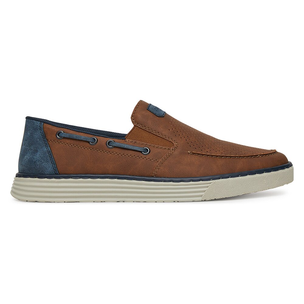Polobotky HNĚDÁ Syntetický materiál,Přírodní kůže (useň) - Lícová RIEKER B2264-24 BRĄZOWY Rieker Pánské/Obuv/Polobotky
