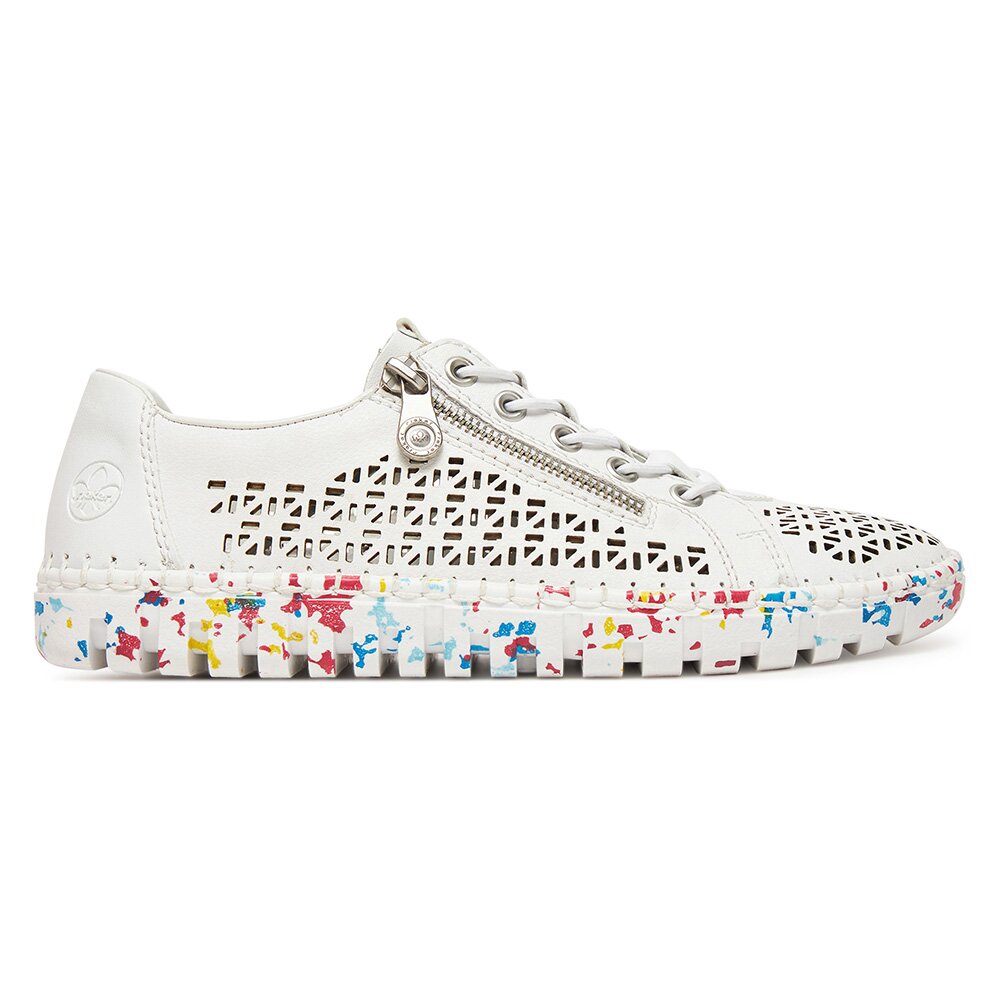 Tenisky BÍLÁ Syntetická tkanina,Přírodní kůže pokrytá syntetickým materiálem RIEKER M2357-80 Biały Rieker Dámské/Obuv/Tenisky