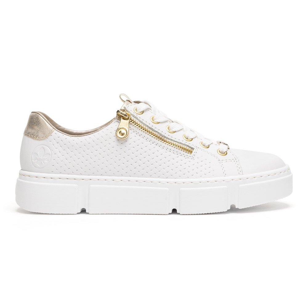 Tenisky BÍLÁ Syntetický materiál,Přírodní kůže (useň) - Lícová RIEKER N5932-80 BIAŁY Rieker Dámské/Obuv/Tenisky