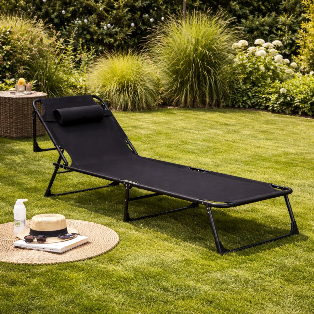 Pohodlné zahradní lehátko je ideální volbou pro relaxaci na terase, balkonu nebo u bazénu. Díky měkké opěrce hlavy poskytuje maximální pohodlí při opalování, čtení nebo relaxaci na čerstvém vzduchu. Nastavitelné opěradlo usnadňuje nastavení ideální polohy - od sedu až po úplné ležení - přesně podle vašich potřeb. Robustní ocelová konstrukce zajišťuje vysokou pevnost a odolnost, zatímco skládací mechanismus umožňuje rychlé složení a snadné skladování mimo sezónu. Zahradní lehátko je tak praktickým a pohodlným řešením pro každého, kdo si chce venkovní relaxaci užít naplno. Specifikace: Typ produktu: zahradní lehátko Konstrukce: ocel Opěrka hlavy: ano Polohování opěradla: ano Skládací konstrukce: ano Protiskluzové koncovky: ano Maximální nosnost: 120 kg