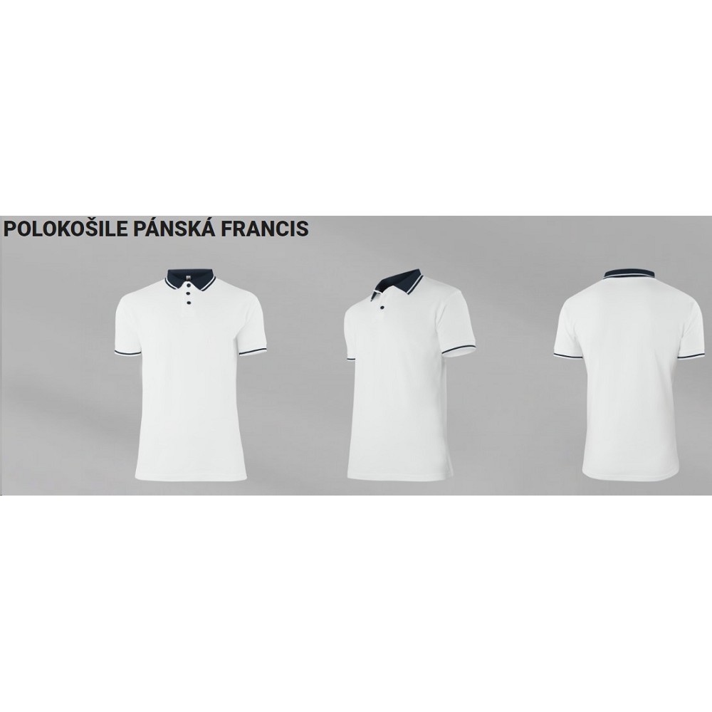 Polokošile Francis krátký rukáv pique, 100 % bavlna 220 g/m2 Materiál 100% bavlna Silikonová úprava. Gramáž 220g/m2 Pánská polokošile na sport i běžné nošení. Kontrastní provedení límce a manžet rukávů z žebrového úpletu. Vyštíhlený střih. Léga se 3 knoflíky v kontrastní barvě. Vhodné pro výšivku. Barvy : bílá, červená, námořní modrá požadovanou barvu napište do poznámky v objednávce