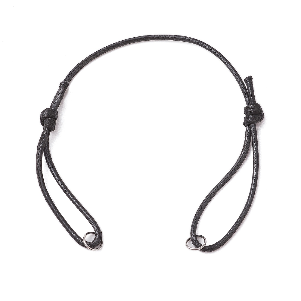 Nastavitelný náramek z voskované šňůrky s ocelovými kroužky – Polotovar pro vlastní tvorbu Univerzální základ pro vaši originální tvorbu šperků! Tento náramek je vyroben z odolné voskované polyesterové šňůrky a osazen kroužky z nerezové oceli (typ 304), které slouží jako úchyty pro snadné připevnění libovolného mezidílu podle vašich představ. Barva šňůrky: černá Barva kroužků: nerezová ocel Délka: nastavitelná 13–24 cm Průměr šňůrky: 1,5 mm Rozměry kroužků: 6×0,7 mm, vnitřní průměr 4,5 mm Ideální pro výrobu vlastních personalizovaných náramků – stačí doplnit mezidíl a váš jedinečný šperk je hotov! Náramky prodáváme po jednom kusu.