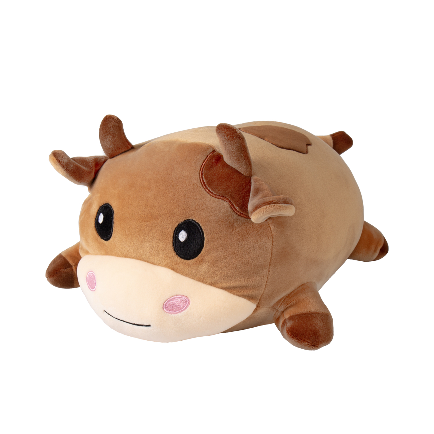 Heboučký polštář ve tvaru kravičky s roztomilým obličejem.