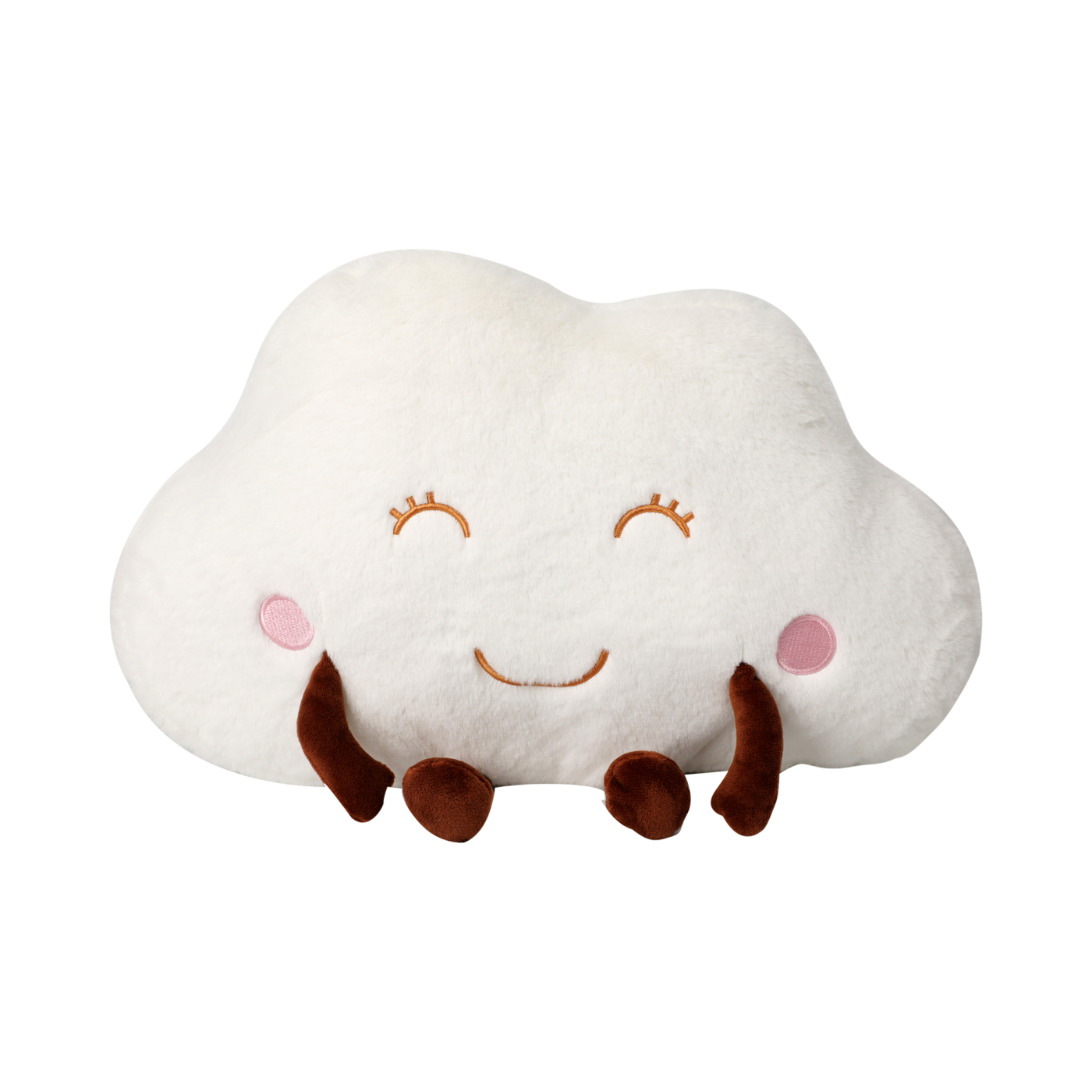 Heboučký polštář ve tvaru mráčku s roztomilým obličejem.