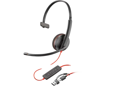 Poly Blackwire 3210 černá / Náhlavní souprava / mikrofon / jedno sluchátko / USB-C/A (8X214A6)