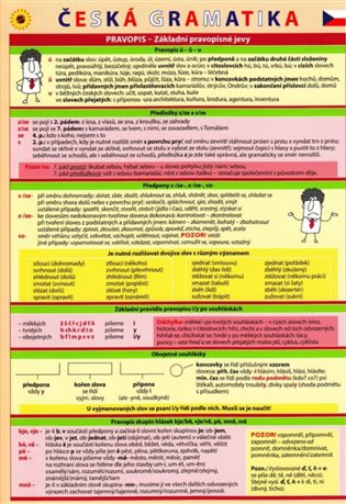 S tímto přehledem přehledem České gramatiky se seznámíte se základními pravopisnými jevy jazyka českého. S touto tabulkou češtinu zvládnete hravě. Rozložitelná tabulka, která se vejde do každého sešitu, či notýsku!