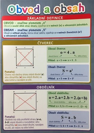 S tímto přehledem vzorců pro výpočet obvodů a obsahů zvládneš matematiku hravě. čtverec - obdélník - trojúhelník - pravoúhlý trojúhelník - kosočtverec- rovnoběžník - lichoběžník - kruh - kružnice - pravidelný mnohoúhelník. Pythagorova věta.