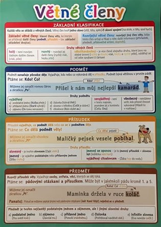 S tímto přehledem Větných členů zvládneš češtinu hravě. Základní členění - Podmět - Přísudek - Předmět - Přívlastek - Příslovečné určení - Doplněk s vysvětlením a příklady. A4 formát
