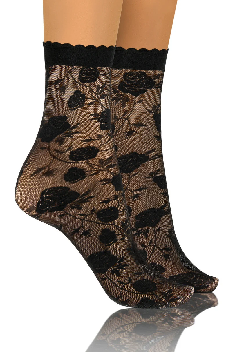 Ponožky WZ 10 PIKOT od značky Sesto Senso jsou dokonalým spojením elegance, ženskosti a pohodlí. Průhledná síťovina v kombinaci s bohatým vzorem černých tkaných rukávů a ozdobným lemem v podobě jemného volánku jim dodává jedinečný půvab. Skvěle se hodí k elegantnímu i ležérnímu oblečení. Kvalitní zpracování se vzdušnými a pružnými materiály zajišťuje dokonalé padnutí a pohodlí po celý den. Jsou nezbytnou součástí šatníku každé ženy, která miluje módní doplňky..