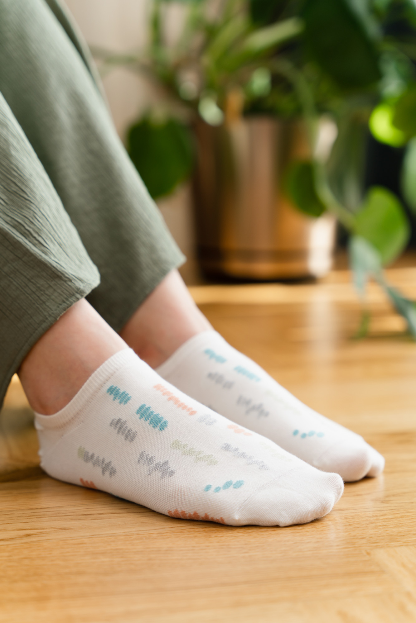 Beztlakový pás Měkká a vzdušná tkanina Polský výrobek Ponožky na nohy Účinně odvádí vlhkost Jemný vzor Vysoká kvalita Bavlna: 72 % Elastan: 2 % Polyamid: 26 %