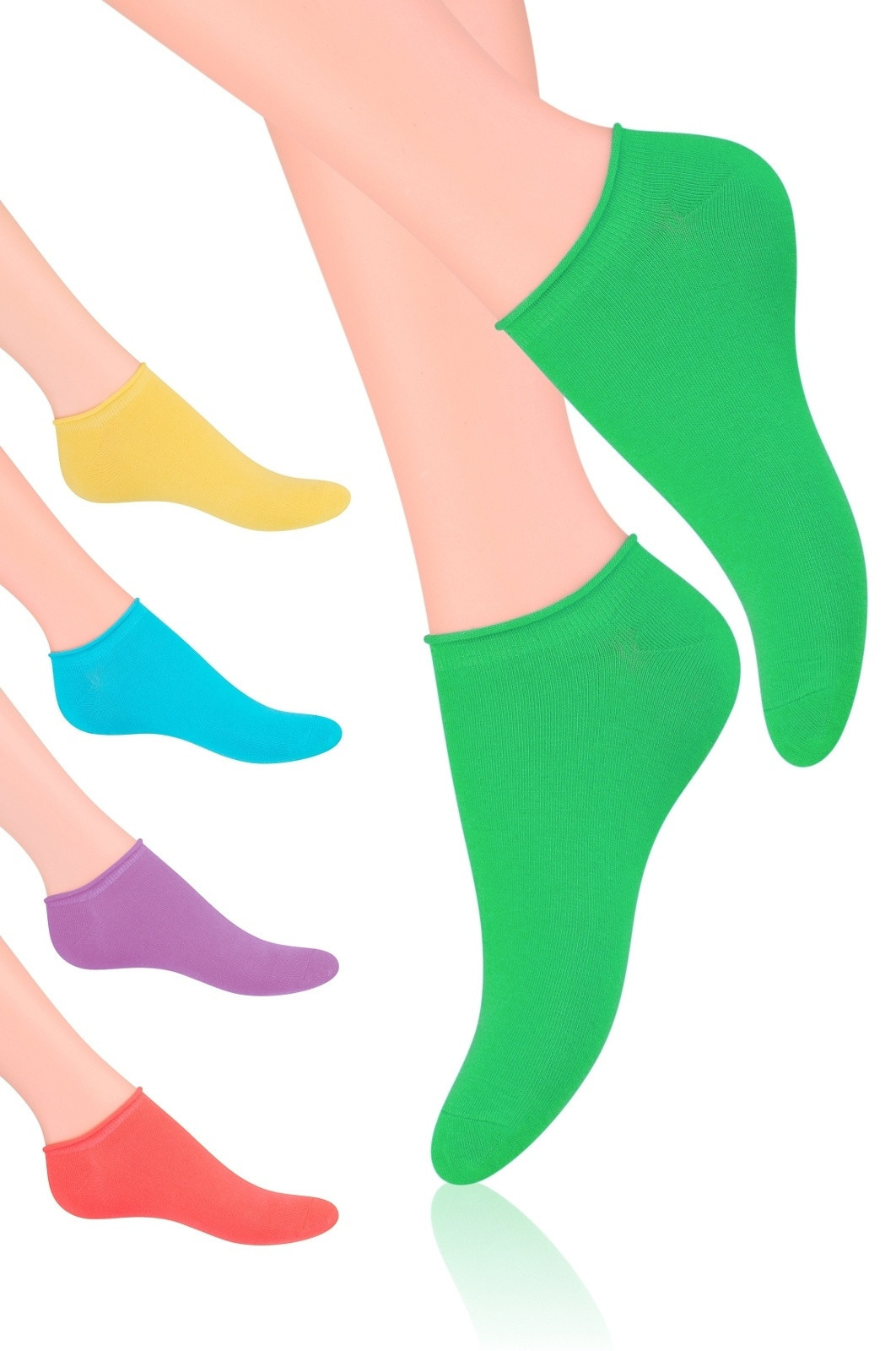 Bavlněné (87%) dámské kotníkové ponožky s přídavkem elastanu. Mají nestahující lem.